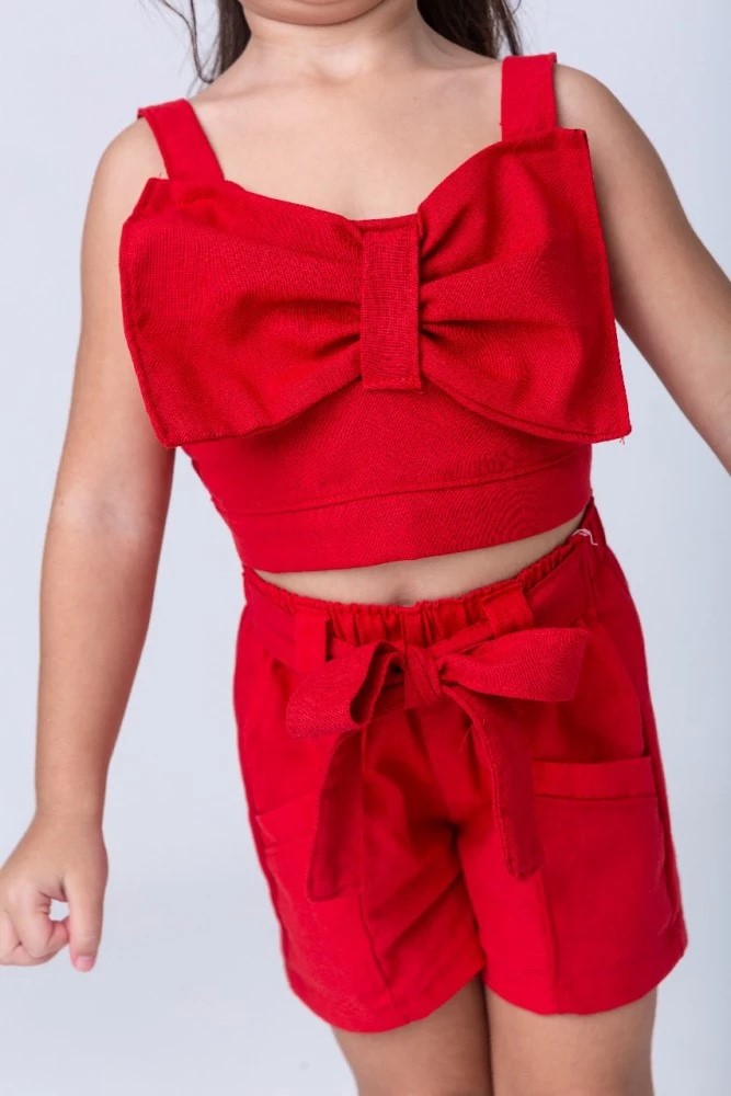Short: Com elástico e laço na cintura amarrável