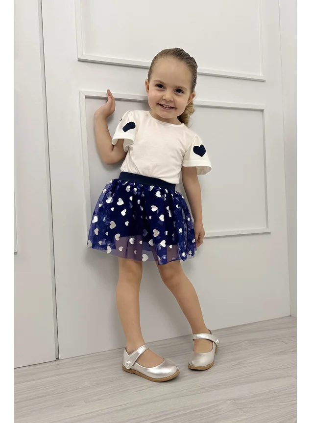 Conjunto Infantil Marinho Coração com Tule Prata Foil