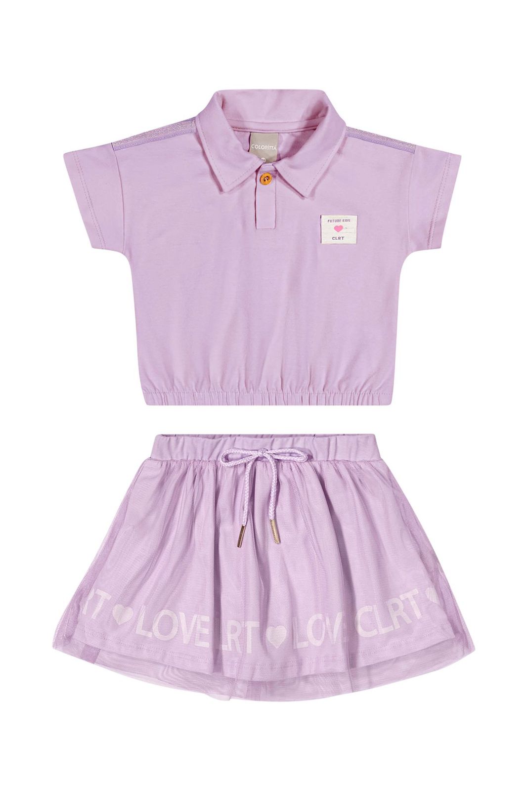 O Conjunto Infantil Menina com Saia Colorittá é composto por uma blusa confeccionada em cotton leve e saia em tule e cotton leve com shorts interno em malha penteada. A Blusa possui gola polo apresenta um design descolado, ideal para ocasiões mais casuais, enquanto a saia de tule traz leveza e um toque divertido. A frase 'Love CLRT' estampada na saia significa 'Amo Colorittá'. Garanta esse conjunto que combina charme, estilo e conforto para momentos inesquecíveis!